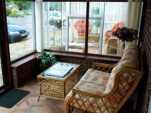 The 4 images below are internal views which show how the display conservatories were fully finished with roof blinds, vertical blinds, tiled floors, cane furniture and ceiling fans - all of which were available as optional accessories. Many conservatory customers were attracted by this all inclusive one stop shopping experience.