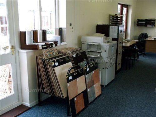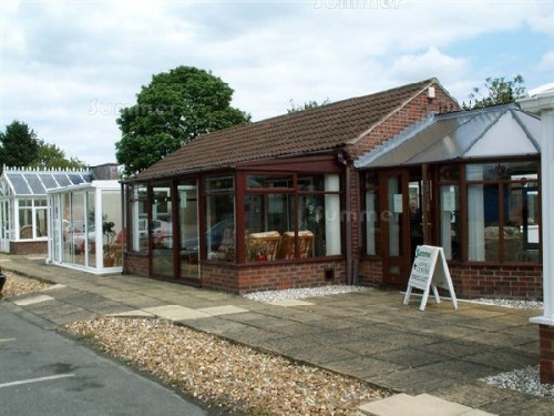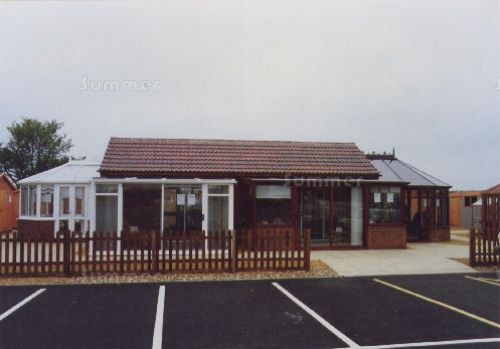The image below shows the well equipped and comfortable sales office behind the display conservatories, complete with floor tile samples: