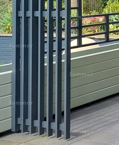 EXTRA NOTE:- THE CUSTOMER ADDED THE DECORATIVE WALL SCREENS, THE PLANTER AND THE RAIN CHAIN.