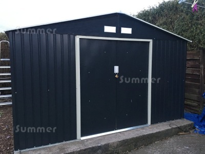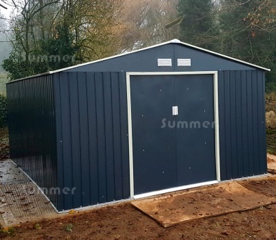 I was looking for a solution to store a motorbike, a couple of mowers and various bits of kit, I ran electric to it so we can keep batteries etc on trickle charge over the winter. For me the width of the doorway was most important as the tractor mower had a 42 inch cutting deck you can't fit through a regular shed door way. I looked high and low for a solution and settled on the idea of a tin shed. We got someone in the lay the concrete foundations, that was relatively easy and very important. Reviews had said 4-6 hours to build, it took us two days and it was a freezing cold winters day. My first bit of advice would be to pay someone else to do it if you can. What really takes the time is dismantling it when you realise 10 steps in that the bits you'd fitted were the wrong way round or upside down and the holes for the next bit aren't lining up. You REALLY need to concentrate, spend time getting all the metal bits on the ground in their “groups”. Keep them well out of the way till you need them. My other bit of advice is you have to build it do it when it's warm, your hands will get so cold you can't hold the fiddly self-tapping screws. Finally – use electric screwdrivers with magnetic ends!