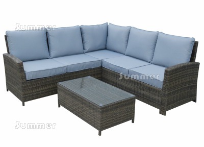PICTURE: A 6 seater rattan corner sofa with coffee table.