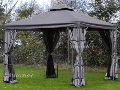 Many of our metal gazebos with a removable canopy also include curtains, ensuring extra privacy and protection from the elements. Some metal gazebos feature mesh insect screens, which are see-through but keep insects out. Other metal gazebos are supplied with side curtains which are not see-through, providing privacy aswell as keeping insects out. A few metal gazebos include both mesh insect screens and side curtains, providing maximum flexibilty. Side curtains and mesh insect screens supplied with our metal gazebos are retractable.