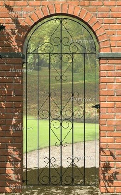 PICTURE: A gate with a solid brick arch, which cannot be moved so the access for large panels is limited to the size of the opening.