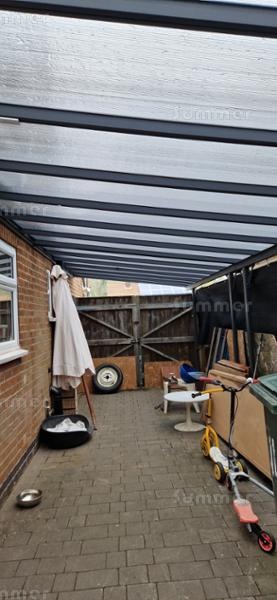 - Tinted 6mm thick twinwall polycarbonate roof