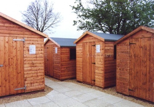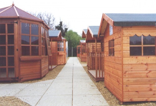 Each building was neatly presented with detailed posters listing the features and prices. The 3 images below show sheds, greenhouses, summerhouses and garages on display.