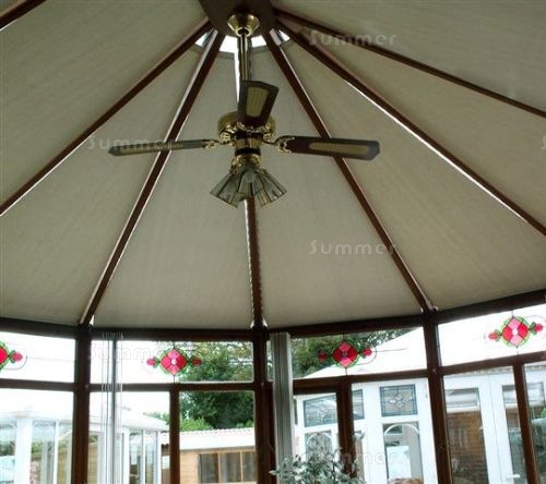 The 4 images below are internal views which show how the display conservatories were fully finished with roof blinds, vertical blinds, tiled floors, cane furniture and ceiling fans - all of which were available as optional accessories. Many conservatory customers were attracted by this all inclusive one stop shopping experience.