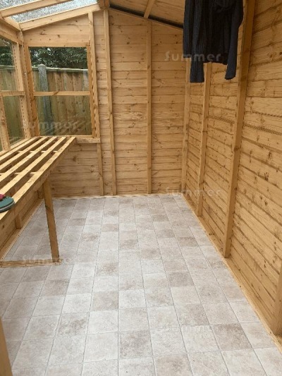 I purchased my Summerhouse from you, which was delivered in April, I just wanted you to know how very pleased I am with it. My son who is a carpenter erected it and found the instructions straight forward to follow, I am now enjoying my summerhouse and enclose a picture, I have painted inside too. Thankyou.