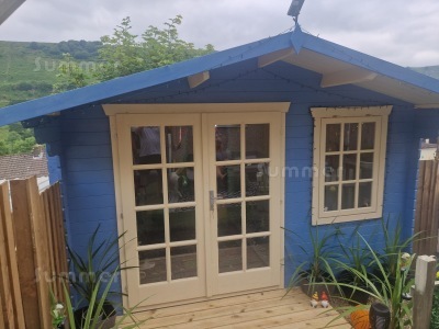 When we received our initial phone call after ordering, the nice man I spoke to did say that you rarely receive updates or photos of completed cabin by customers so we received our order from you a couple of weeks ago and thought you might like to see how 2 disabled OAPs (in our 60's) have got on so far with our Apex 28mm Log Cabin 881 (keep in mind this is Scotland and we do not get the weather very often here to start building outdoors).