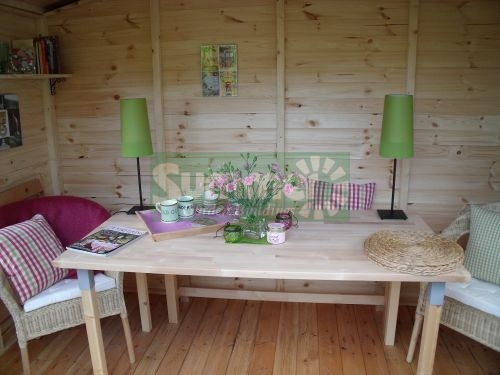 I purchased my Summerhouse from you, which was delivered in April, I just wanted you to know how very pleased I am with it. My son who is a carpenter erected it and found the instructions straight forward to follow, I am now enjoying my summerhouse and enclose a picture, I have painted inside too. Thankyou.