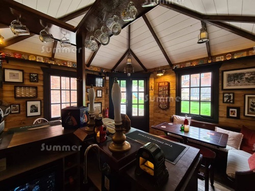 This exciting trend started during pandemic lockdowns when people could not go out, but it has developed into a stylish way to furnish your summerhouse or garden room. After all, a pub has everything you need to relax in - enough seating for the whole family, tables for dining plus a huge choice of drinks, all in a comfortable pub setting. You can sit at the bar or around a table, you can play darts or you can serve the drinks behind the bar.
