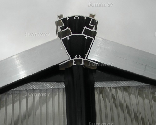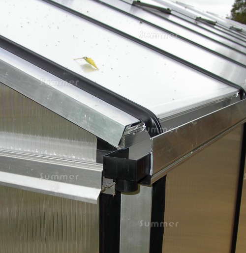 The installation included a substantial box gutter with heavy duty support columns and easy access with 4 sliding double doors. Ample ventilation is provided with 6 low level 11 blade louvred vents and 42 roof vents with automatic vent openers. The 10mm twinwall polycarbonate glazing provides better insulation than glass, an important factor for a greenhouse which requires heating during the winter. It is not just the plants that need warmth. The greenhouse is regularly used as a classroom. We also supplied the heavy duty staging. The strong construction features cross bracing for rigidity and substantial bar capping to retain the glazing. The installation took 2 expert fitters 2 weeks to complete.