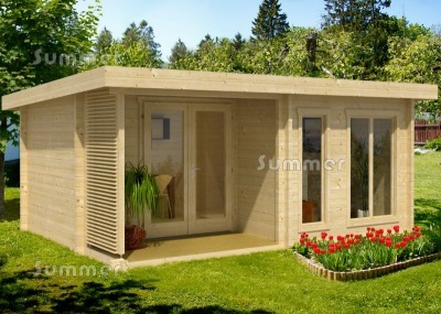 Many of our 2 room log cabins are designed with 2 rooms as standard, including apex, pent roof and corner designs. 2 room log cabins are often used to accommodate a summerhouse and a shed neatly under the same roof. The larger room normally features double hinged glazed doors for use as a summerhouse. The smaller room is normally designed as a storage area with a fully boarded door.