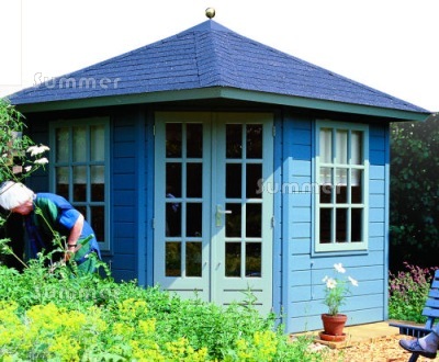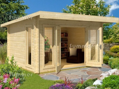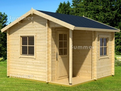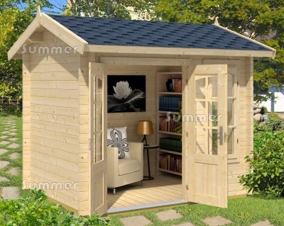 A popular size for a smaller log cabin is 8'x8' (2.4x2.4m) with enough space for a 6 seater corner lounge set or a 4-6 seater dining set. Another popular size is 10'x10' (3x3m) which is already larger than most garden summerhouses. Larger log cabins range from 10'x13' (3x4m) up to 14'x20' (4x6m). Multi room log cabins may be even larger. Arranging furniture in your house or in a small room can often be a useful guide to the size you need. Most people buy the biggest size that fits comfortably within the available space in the garden.