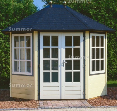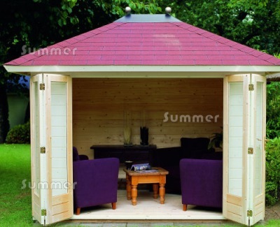 - A summerhouse is normally designed for seating and looking out on the garden, with large glazed doors and large windows.