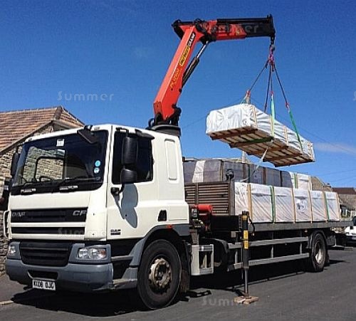 - Lorries with a truck mounted crane or fork lift can unload large pallets quickly and easily in one piece with no hand unloading required.