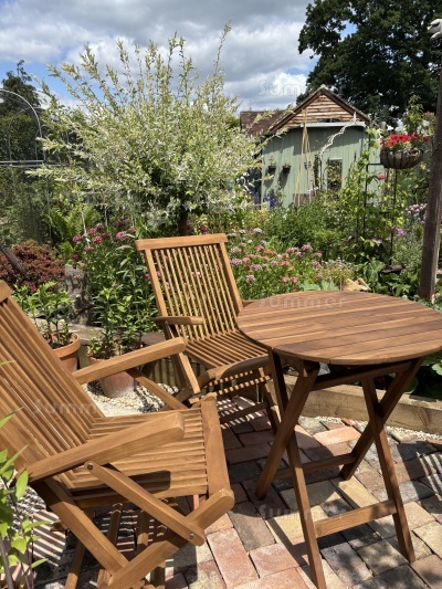 2 Seater Teak Bistro Set 171 - Folding Armchairs, Round Table