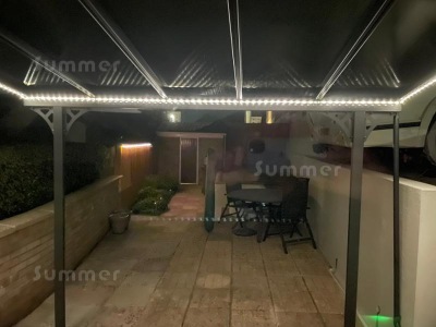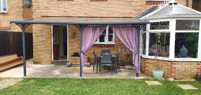 SEALING A LEAN TO GAZEBO AGAINST THE WALL: Although it is not essential, for best results a lean to gazebo should be sealed against the host wall. There are various ways of doing this depending on the wall surface. The easiest way is a simple silicone seal but this will require the most maintenance. Adhesive flashing is a more permanent solution but it will also require occasional maintenance. The best seal is lead flashing dressed into the existing mortar, which requires little or no maintenance. However, it is the most expensive option and normally requires a plumber. With no seal at all, a lean to gazebo still provides a waterproof canopy and although the walls may be damp on occasion this may not be a problem. Lean to gazebos are normally supplied with no flashing or sealant included due to the various different options available to suit different sites and individual requirements.