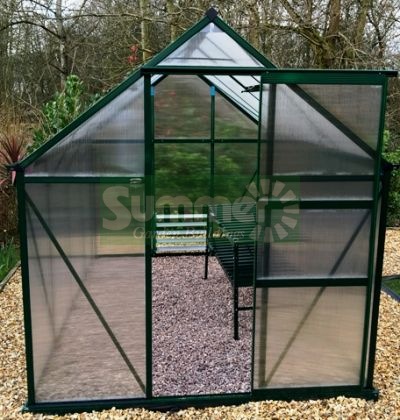 TWIN WALL POLYCARBONATE: Twin wall polycarbonate is virtually unbreakable and very practical. With small children or pets around polycarbonate greenhouses are safer. Polycarbonate is also safer to handle during installation. Polycarbonate greenhouses provide a similar growing environment to glass greenhouses with better insulation properties and reduced glare. Polycarbonate also provides good insulation from frost and maintains a more even temperature for better plant growth. Twin wall polycarbonate also diffuses light to prevent scorching. Twin wall polycarbonate glazing is stronger than the flimsy single skin polycarbonate sheeting supplied with some greenhouses.