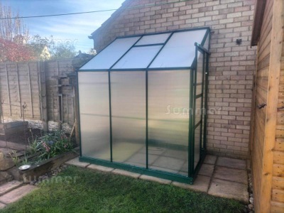 GREENHOUSE LOCATION: Ideally your greenhouse should have a clear space at least 18" wide on all sides, if possible. This ensures easy access for both installation and future maintenance. In reality this is often not practical and at many sites it is not needed. A reduced clearance is often possible on one or two sides. You should cut back or remove any nearby shrubs and trees. Remember to allow for future growth. The best position for a lean to greenhouse is against a south facing wall and outside the shadow of nearby buildings and trees. A sheltered position is best otherwise additional screening may be advisable. Polycarbonate glazing is not recommended at exposed sites. Plants need plenty of water so your greenhouse should be close to a water supply and the site should be well drained.