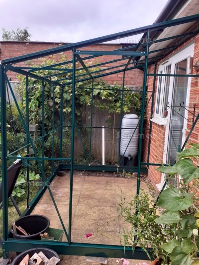 TIPS IF HEIGHT IS RESTRICTED: If the height of the host wall is limited it is important to check the height available against the external ridge height of the lean to. The lean to ridge is the highest part of the roof, at the rear. At sites where the wall height is restricted it may be possible to excavate the base area in order to reduce the ground level. This is not always practical at every site as it depends on the surfaces and the ground levels. Be careful to ensure that the greenhouse door opening is unobstructed. If there are doors or windows in the host wall which are enclosed within the lean to you should also be careful to ensure that these can be opened freely.