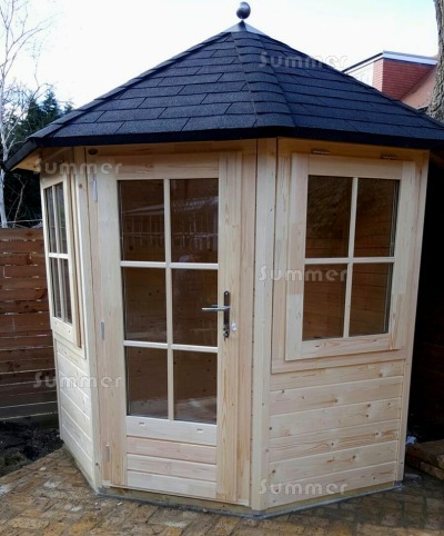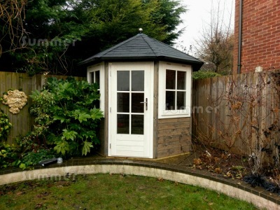 - External summerhouse size measured as a rectangle 8'0"x8'0" (2.45m x 2.45m) or 9'10"x9'10" (3.0m x 3.0m)